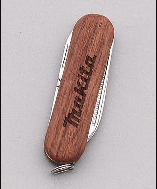 4-Function pocket knife with wood panels suitable for laser engraving. Individually boxed. 2.25"